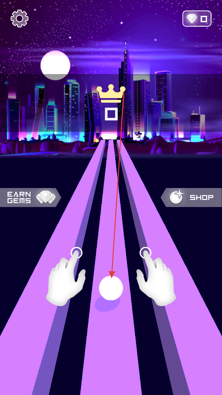 2、跟随音乐完成挑战:伴随富有节奏的背景音乐,按音乐律动控制小球前进,在旋律中把握时机躲避障碍,让操作与音乐融合,提升游戏的趣味性。