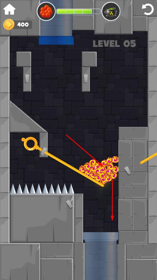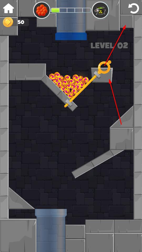 1、拉环引导小球移动:通过拉动销钉指示球的方向,引导小球在场景中移动,需根据机关布局选择拉环时机,确保小球避开危险区域,顺利向安全地带转移,体验拔针的核心乐趣。