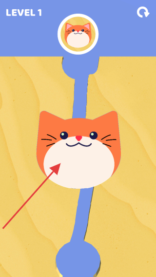2、在【LEVEL1】,引导蓝色液体流动,填满路径,使猫咪图案完整显示,完成关卡。