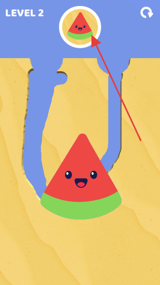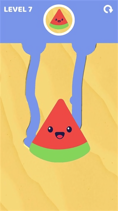 3、进入【LEVEL2】,控制蓝色液体填充西瓜形状路径,让西瓜图案完整呈现,通过此关。