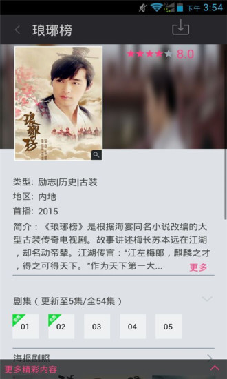 下载本应用随时、随地、随心用手机观看正版官方授权高清无广告《琅琊榜》电视剧全集(不断更新),本应用还支持在线购票功能。