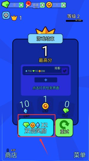 3、完整观看广告视频可激活双倍金币增益,持续3场比赛时效。