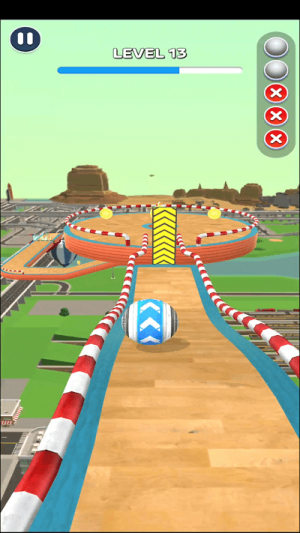 1、基础玩法是通过滑动屏幕控制滚球转向,在保持平衡的同时尽可能快地到达终点,收集沿途的金币奖励。