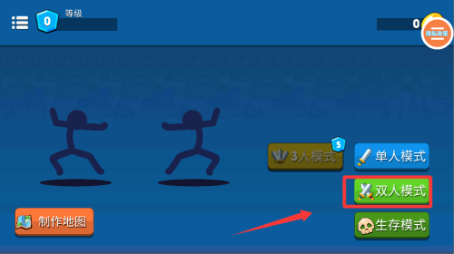 1、开局先选择双人对战模式,熟悉火柴人的基础操作与技能释放方式,掌握攻击和防御的节奏,打好对决基础。