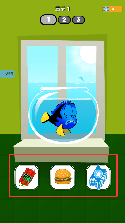 3、选择下方的道具进行闯关,帮助鱼儿逃出水缸。