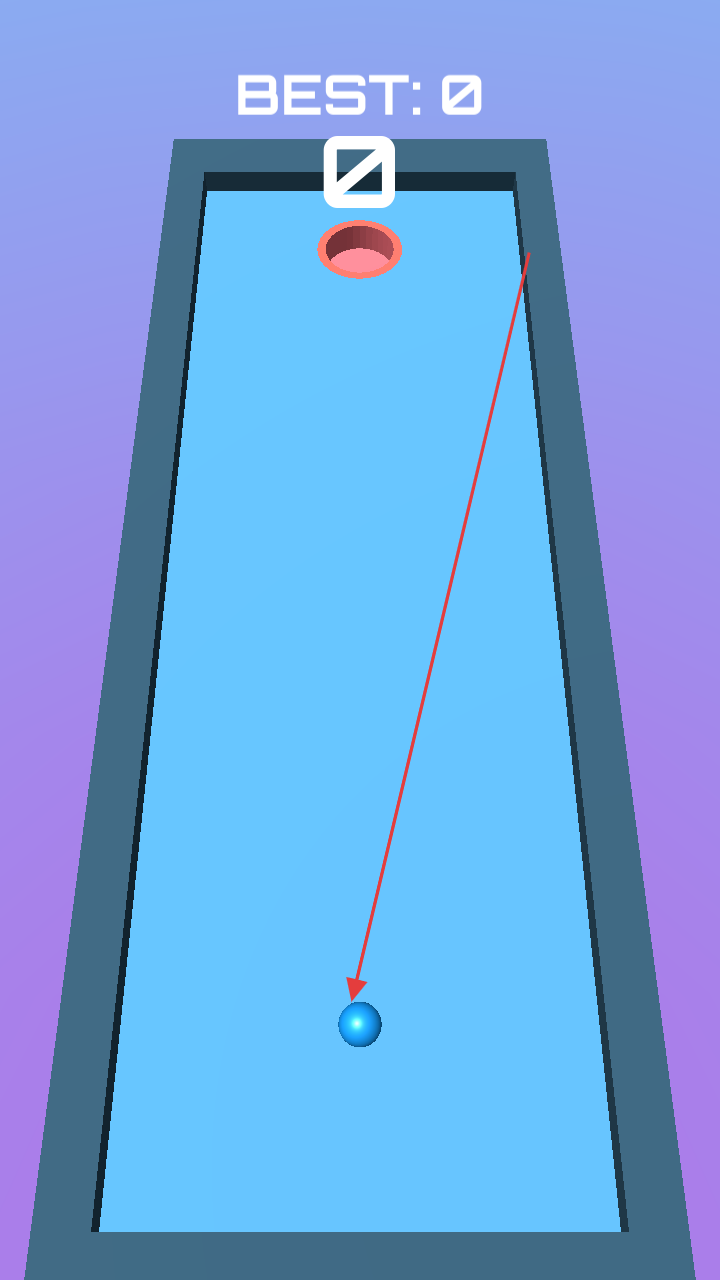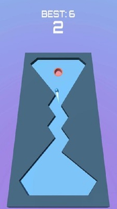 2、在游戏界面中,操控蓝色的球,通过滑动、点击等操作方式,规划球的运动轨迹,将球打入上方的洞中。
