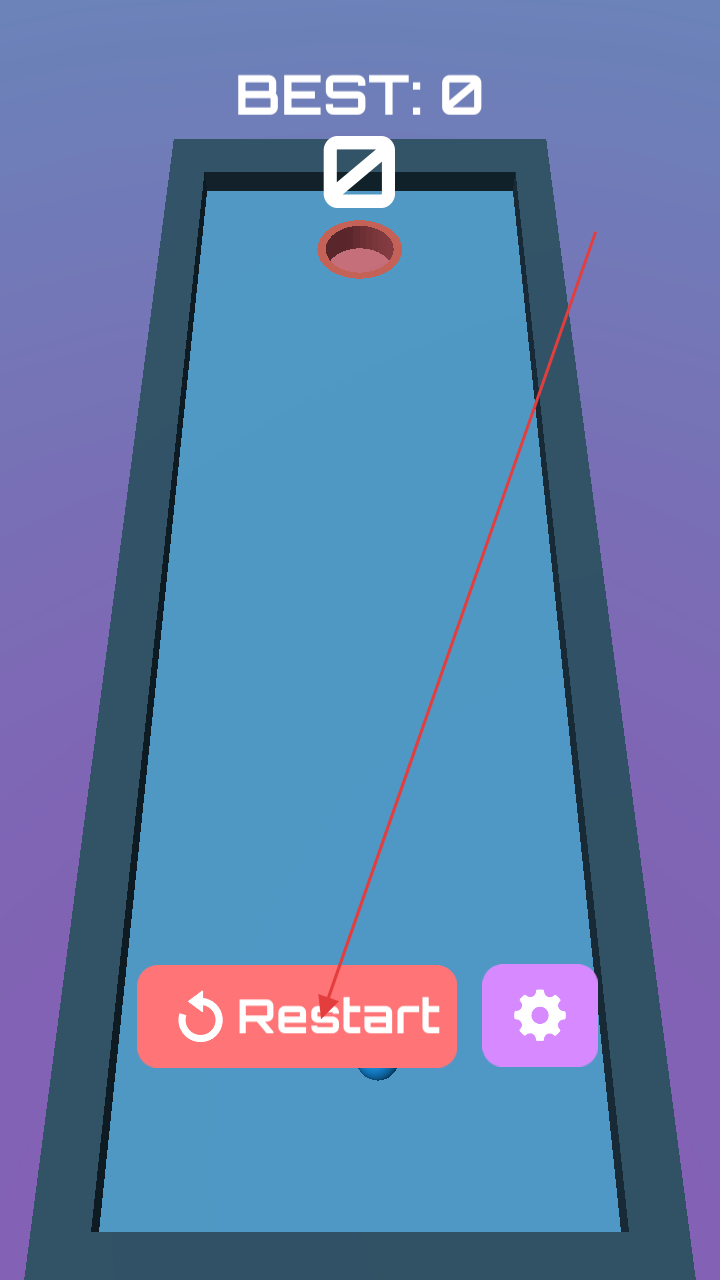 3、如果挑战失败,可点击“Restart”重新开始当前关卡,再次尝试将球打入洞中,随着游戏的进行,关卡的难度会逐渐增加。