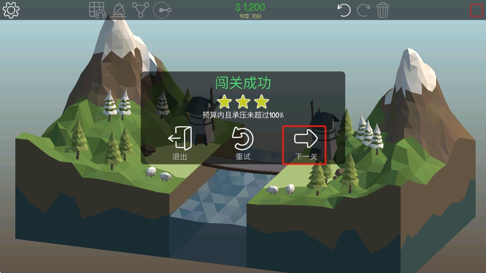3、成功通关后解锁更多关卡,还可获得金币等奖励,这些奖励能用来解锁更坚固的材料和特殊搭建工具,提升造桥能力。