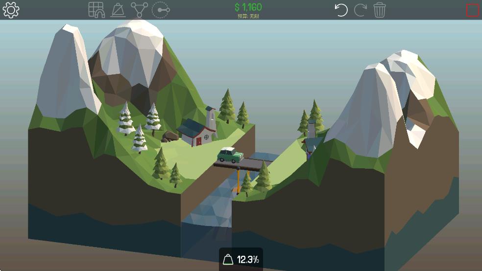 1、桥梁建造核心:以造桥为核心内容,玩家需从设计到搭建全程参与,根据地形和通行需求规划桥梁结构,每一步都需考虑合理性,确保最终桥梁能承载车辆重量。
