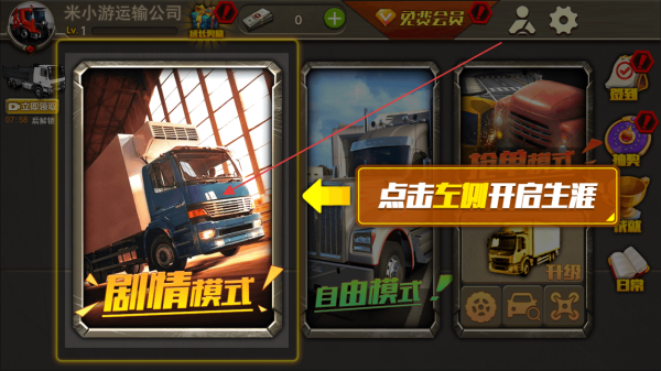 1、进入游戏后,选择“剧情模式”开启卡车运输生涯在剧情模式中,玩家将体验一系列的运输任务和故事线。
