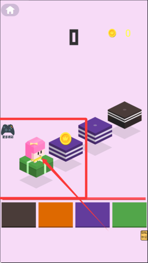 1、基础玩法是通过点击屏幕控制小人角色在不同平台间跳跃移动,需要避开红色障碍物并尽可能多地收集金色硬币,成功到达终点即可通关。