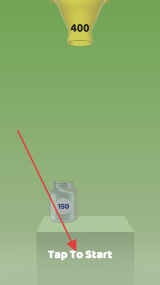 1、点击【Tap To Start】,开始游玩,准备引导漏斗(标400)的颗粒落入罐子。