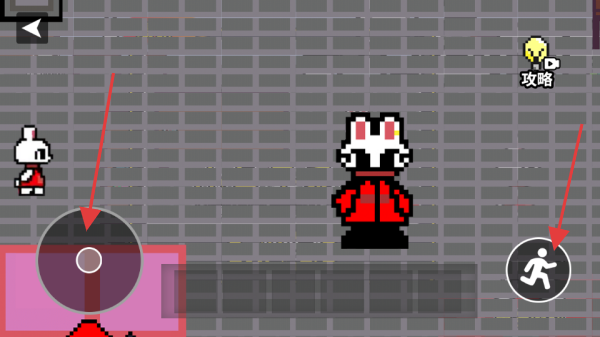 3、进入游戏场景后,通过左下角虚拟摇杆控制角色移动,利用右下角的奔跑按钮(人形图标)躲避危险,遇到困难可点击“攻略”获取帮助,探索不同路线以解锁多种结局。