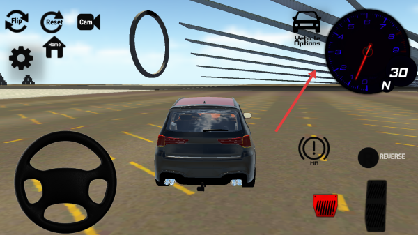 2、点击“Vehicle Options”,可调整车辆参数,遇环形障碍,控速、转向尝试通过,练技巧。