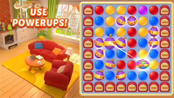 3、摆家具打造空间:按喜好布置空间,打造专属的温馨小屋,这一玩法为游戏增添了休闲创意元素,让玩家在紧张的消除挑战后,能享受慢节奏的布置乐趣。