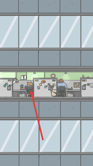 2、紧接着是游戏卡通风格办公场景插画,呈现办公室环境与动物角色工位,是前期都市生活画面。