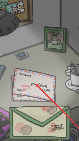 3、办公室的画面出现后是游戏内桌面场景,有信件(含“Mr.SANTA CLAWS” )、照片等,是推动剧情,触发乡村冒险。