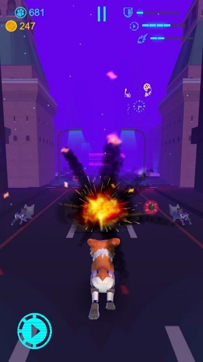 2、狗狗成长系统完善:可收集能量与零件升级火力、防御和移动速度,随冒险深入逐步强化,让狗狗适应更复杂的战场环境。