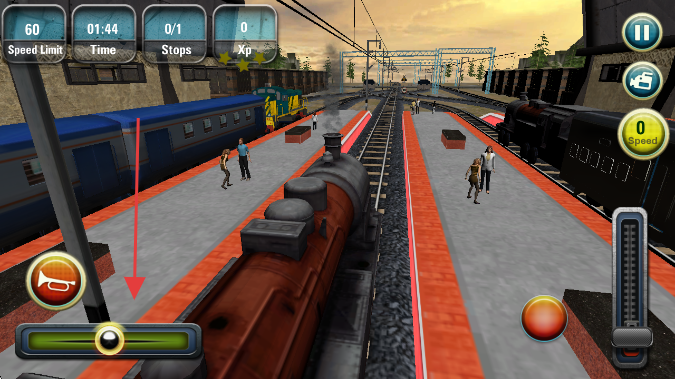 3、监控右侧速度表,驾驶火车沿轨道行驶,完成站点停靠。