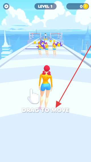 1、在【LEVEL1】,按提示【DRAG TO MOVE】,拖动角色,开始跑酷挑战,前进躲避障碍。