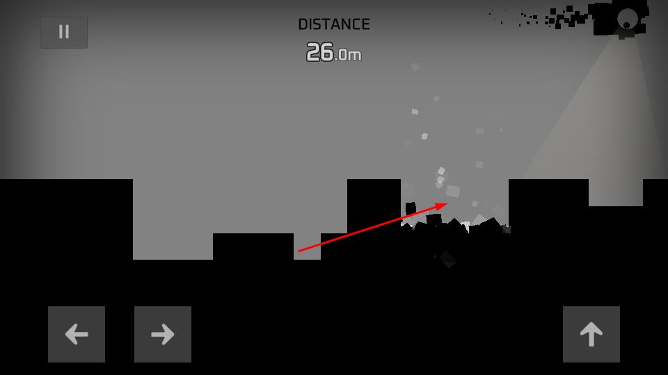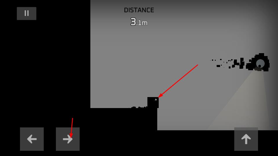 2、进入跑酷场景,利用左下角左右箭头按键控制方块移动,跨越地形,躲避障碍,前行积累距离。