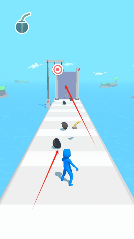1、从基础赛道起步,学习向前冲刺与拾取炸弹的操作,尝试向单个敌人投掷炸弹熟悉机制。