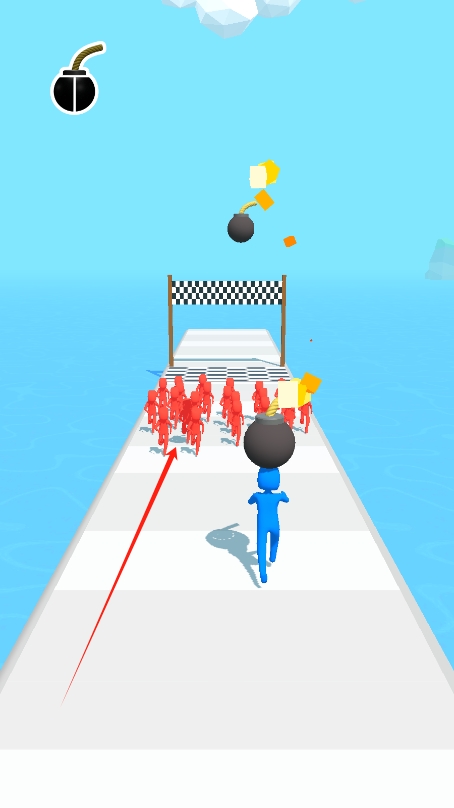 2、炸弹拾取与投掷:途经地面炸弹时自动拾取,瞄准敌人后点击屏幕完成投掷,需预判敌人移动轨迹,确保炸弹命中,范围炸弹可同时攻击多个聚集的对手。