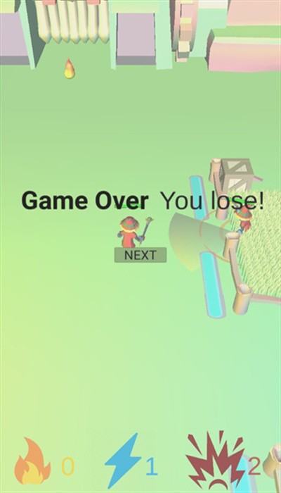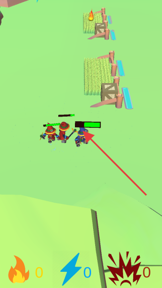 3、遭遇红色敌人(箭头指向),使用技能(下方火焰、闪电等)攻击,消灭对手,推进关卡。