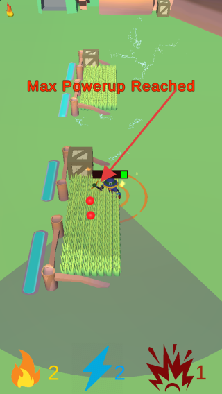 2、靠近草丛,触发【Max Powerup Reached】,收集道具提升能力,清理路径障碍。