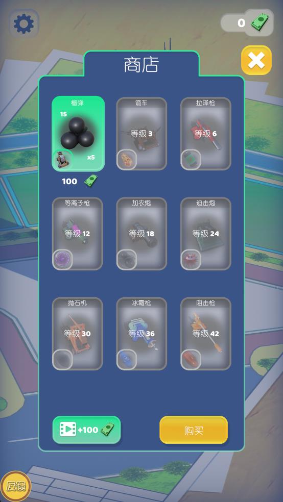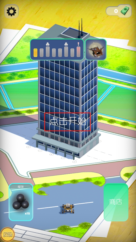 1、武器挑选投放:开始游玩后,从武器列表中选择想要使用的爆炸装置,滑动屏幕调整瞄准方向,点击屏幕完成投放,观察武器引爆后对城市造成的破坏。