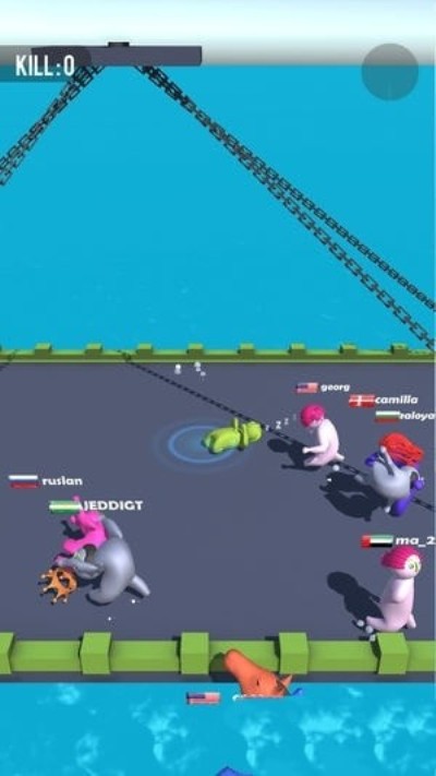 2、扔人进海争生存:尽可能抓住更多对手,将他们无情扔进海里,在激烈对抗中为自己争取生存空间,感受淘汰对手的独特快感,助力自己成为幸存者。