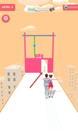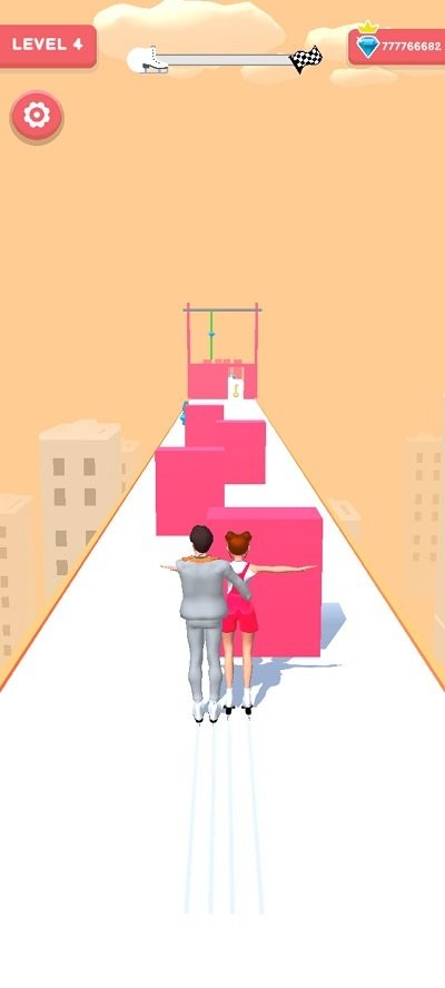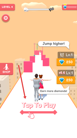 1、Level4界面,点击“Tap To Play”,操控相拥的情侣角色,于城市背景的跑道开启跑酷挑战。