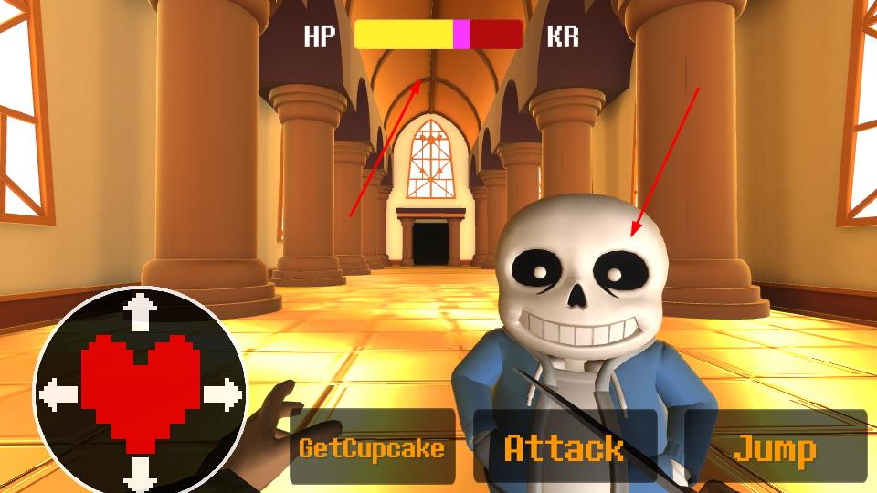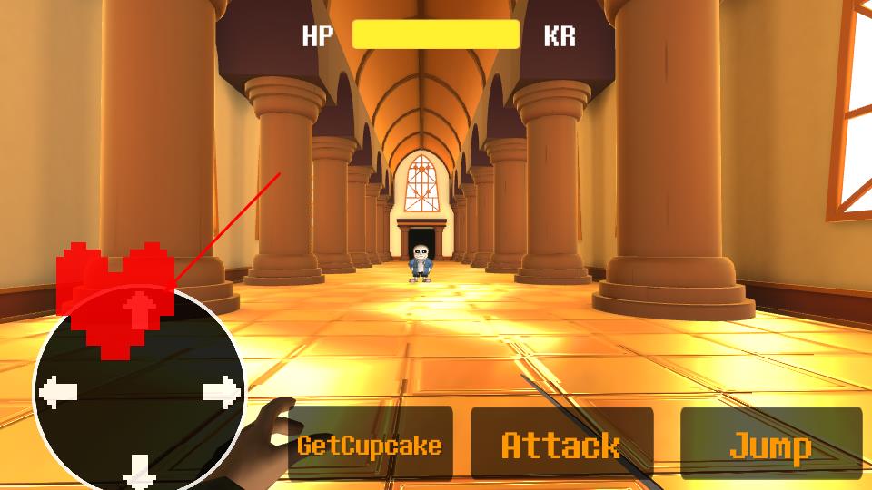 2、进入战斗场景,通过左侧方向按键控制移动,利用“Attack”“Jump”等按键,与Sans展开对决。