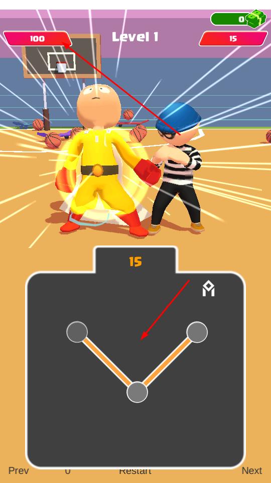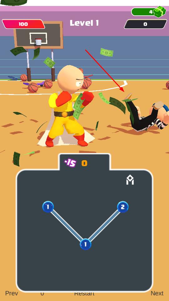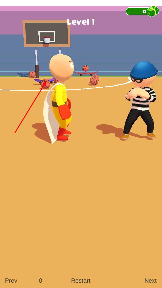 1、进入“Level 1”篮球场场景,操控埼玉形象角色,面对条纹衣敌人,开启战斗挑战。