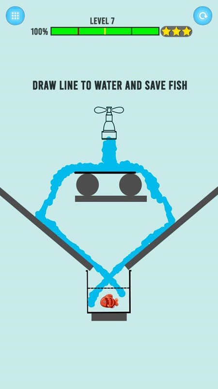 1、观察鱼缸位置与障碍物分布,优先分析水流路径,精准控制水龙头开关与水流大小,高效完成关卡获取三星评价。