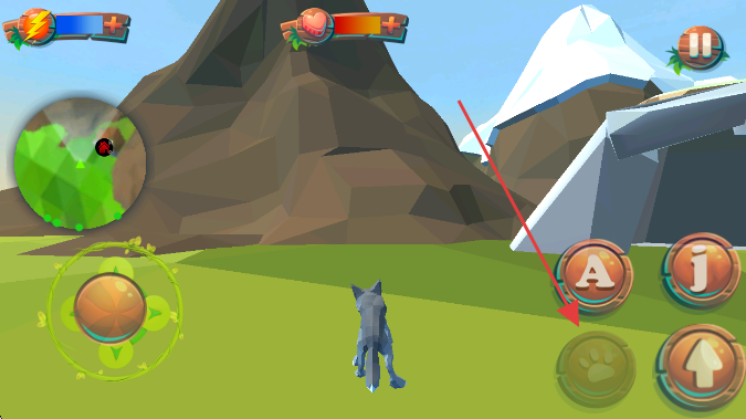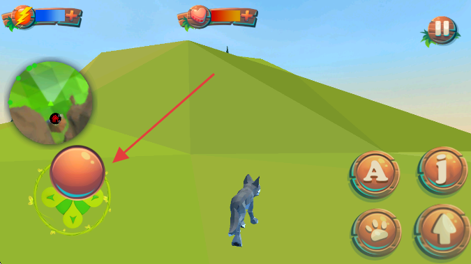 2、操控左侧虚拟摇杆,移动狼探索场景。