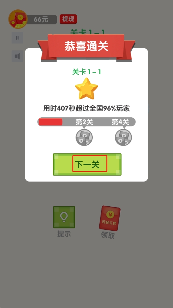 3、成功通关后解锁更多关卡,还可获得星星等奖励,这些奖励能用来解锁提示道具和新的关卡模块。