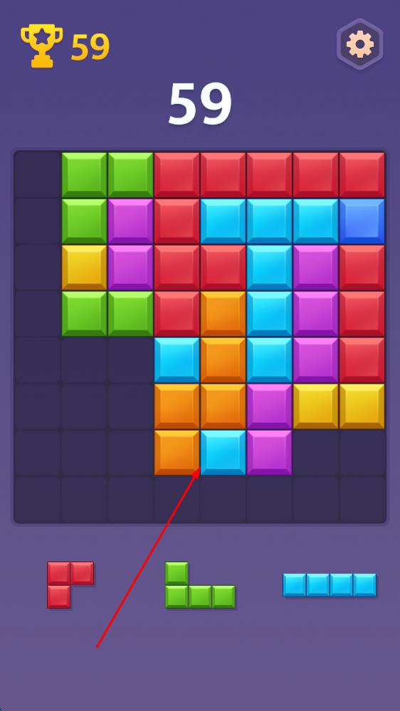 1、方块拖放排列:有节奏地将彩色瓷砖拖到8x8板上排列,合理利用空间,通过旋转和下降区域调整位置,为后续方块留余地。