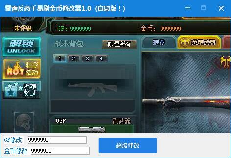 雷霆反恐千易刷金币修改器是一款帮助玩家修改游戏金币和GP的游戏辅助工具,让你在游戏的世界中更好的去战斗,体验游戏的无限乐趣,有需要的玩家欢迎到本站下载。