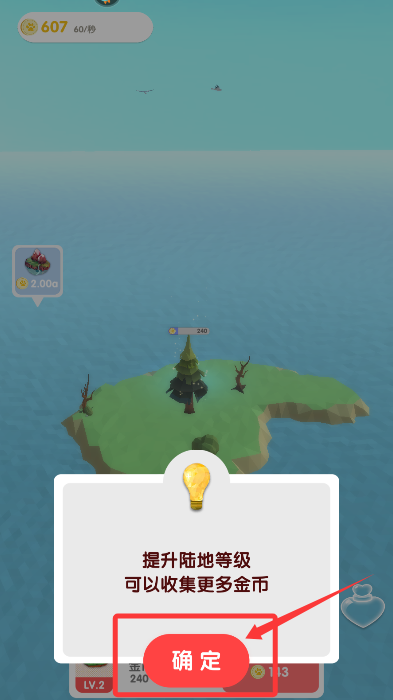 2、完成解锁操作后,确认系统弹出的升级提示,正式进入领地开发阶段。