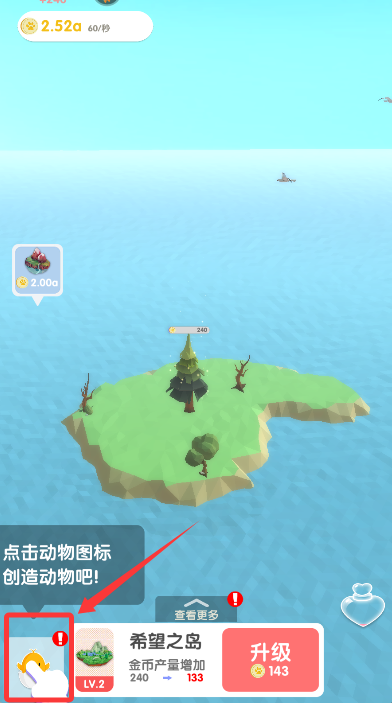 3、切换至岛屿管理视图,轻触底部动物菜单,进入菜单创造更多动物。