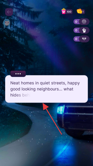 2、进入剧情场景,阅读文字描述,跟随箭头指引,推进故事发展,探索场景隐藏内容。