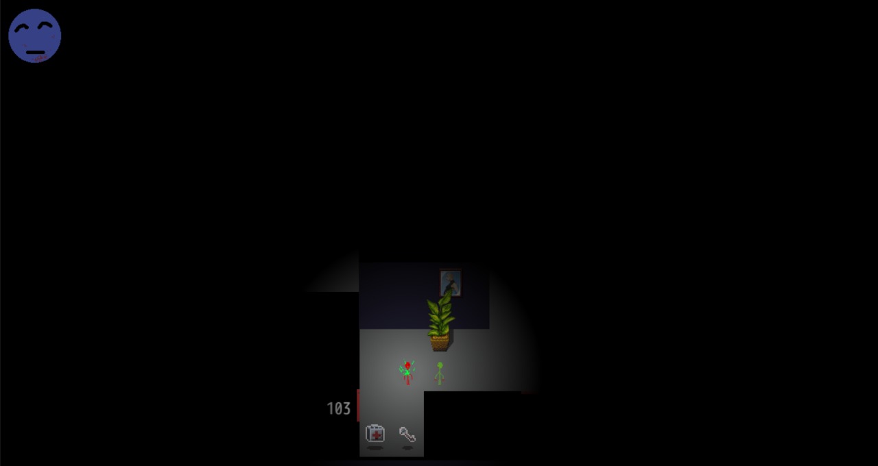 1、进入游戏后,置身于极简风格的恐怖场景中,熟悉周围环境,收集可见的道具与武器,为应对即将出现的危险做准备。