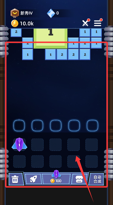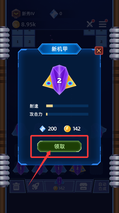 2、在游戏主界面,通过拖拽机甲完成机甲合成,逐步提升战斗单位品质。
