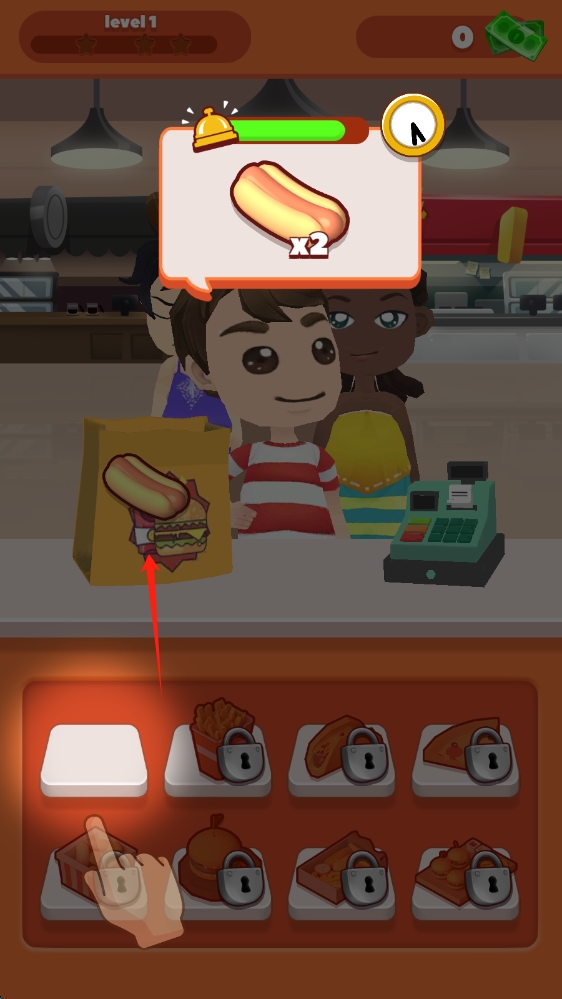 3、成长系统:通过完成订单获得经验值提升等级,解锁新菜品与升级设备,使用金币购买基础升级,钻石可购买高级功能与加速成长,支持观看广告免费获取随机资源。