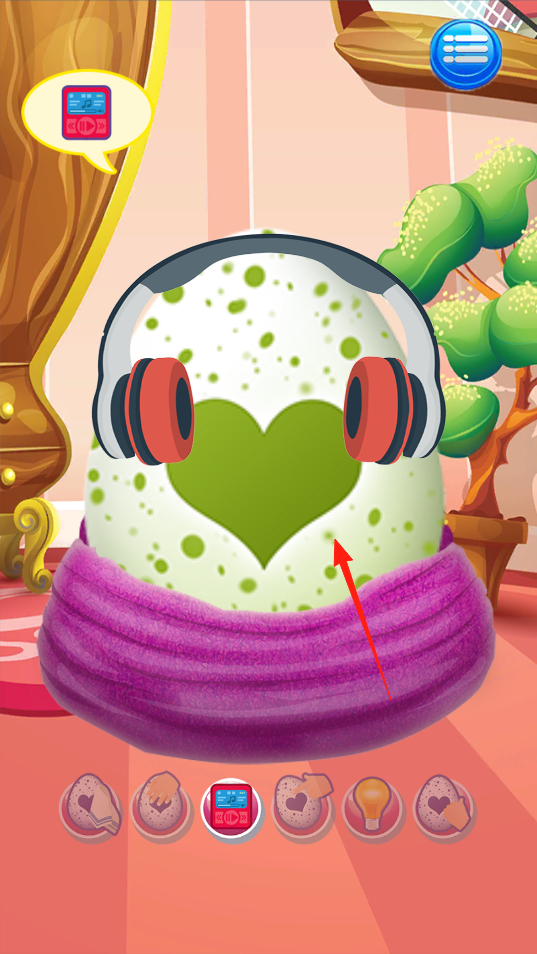3、在蛋的界面,选择耳机道具为蛋佩戴,借音乐互动机制,用声音滋养蛋内生命,观察蛋的状态变化,助力生物孵化,感受创意互动对养成进程的影响,增添养成趣味性。