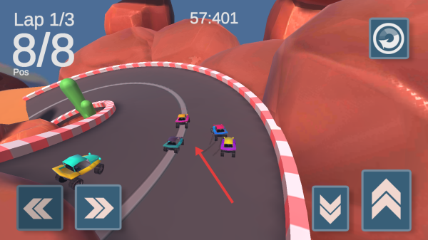 1、赛车操控技巧:操控卡通赛车在赛道飞驰,直道全力加速,弯道精准转向,利用升级玩法中的道具(如加速卡、障碍卡)干扰对手,争夺领先位置。