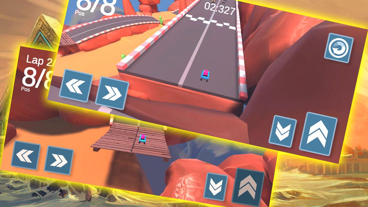 1、卡通风格呈现:采用全新卡通风格,赛车与赛道设计色彩明快、造型可爱,画面轻松活泼,打破传统竞速游戏的严肃感,带来独特视觉体验。