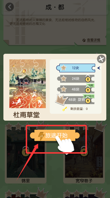 2、进入"杜甫草堂"景点,轻触"开启旅程"按钮启动拼图玩法。