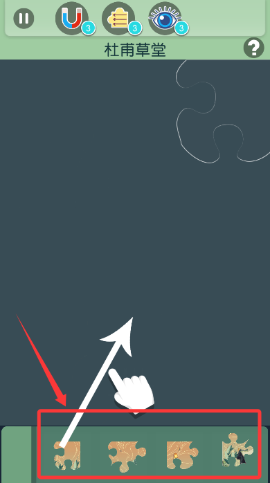 3、移动底部图块至对应位置,逐步还原古建筑完整风貌。
